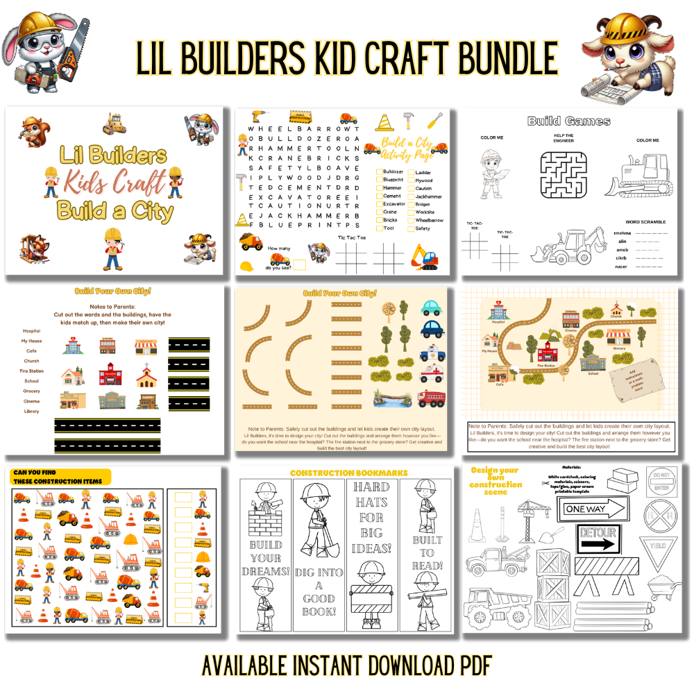 Construction pretend play printable pack is a fun, hands-on activity that lets kids design and build their own city through creative play. With coloring pages, cut-and-build pieces, and interactive games, children stay engaged while developing fine motor skills and imagination. Perfect for homeschool or classroom use, this printable encourages creativity, storytelling, and independent learning